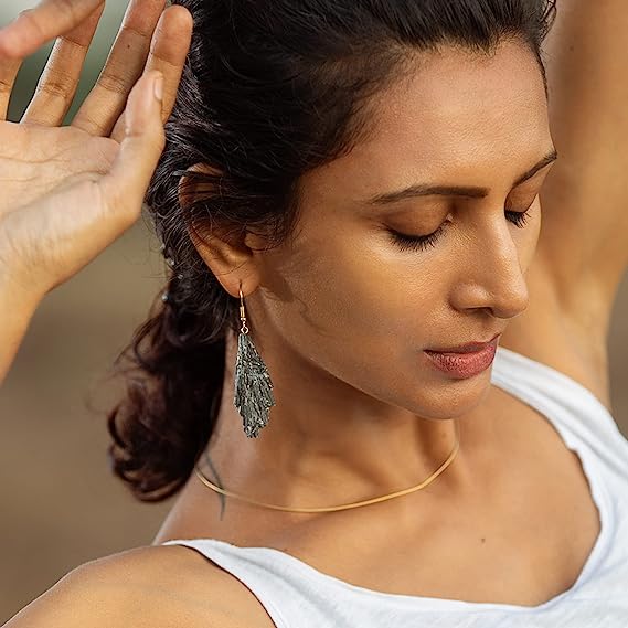 Our AYANA Black Kyanite Crystal Earrings are the perfect accessory to bring you back to the present and help you stay grounded. Kyanite is a strong grounding stone and is known for its ability to clear energy build up in all of the chakras. It's also a powerful healing stone that can help to fill in any gaps in the energy field created by past accidents. Blue kyanite is the most well known for its healing action, but the black stone has a similar level of energy, and can also assist with past life investigations and help you discover possible situations in the future.
