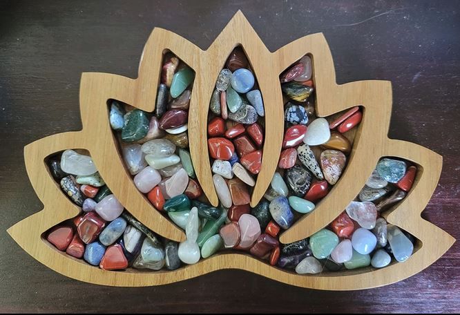 The Curawood Lotus Crystal Tray is an amazing, unique way to display all your crystals and gemstones. Crafted with beautiful acacia wood and finished with a rich varnish, this tray will elevate the beauty of your crystals once they are placed in it. Each section of the lotus flower creates space for multiple shapes and sizes of crystals and gemstones, giving you the opportunity to keep your crystals in a safe and organized place and be easily accessible.